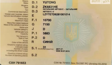 №409181 YUTONG 6831 2008