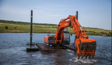 Собственный парк плавающих экскаваторов. Делаем планировку берегов, укрепление откосов, техника на понтонах проходит где другие не пройдут.