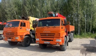 Камаз 65117, Камаз 43118 вездеход. Грузоподъемность стрел до 8 т, вылет стрел до 23м., размер 2,5м*7,2м. Есть вездеходы. Также есть люльки для высотных работ. Оплата нал., безнал, НДС. Есть ДОПОГ, разрешение на перевозку взрывоопасных грузов. Аттестованные операторы. Отрицательный угол наклона стрел