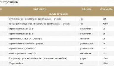 | Аренда грузчиков | 300 ₽/час |