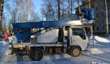 Малогабаритная японская автовышка с поворотной корзиной.
