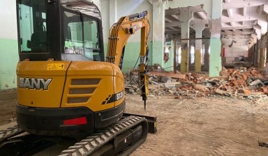 Аренда мини экскаватора Sany SY35U 1. Навесное оборудование Стандартный ковш - 60 см Планировочный ковш - 120 см Узкий ковш - 30 см Гидромолот Delta FX4 - 480 дж 2. Опытный водитель (стаж 6 лет)