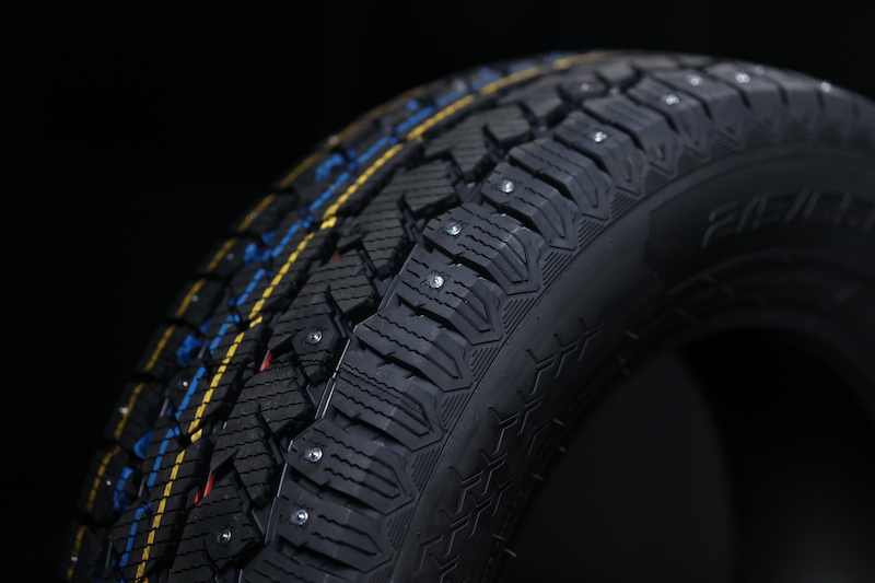 Отдельное внимание в тесте было уделено сцепным свойствам на льду. Плотная нарезка трёхмерными ламелями в сочетании с большим количеством шипов обеспечивает надёжное зацепление при торможении и разгоне. Даже при резком замедлении на обледенелом участке шина сохраняет контроль и не демонстрирует резких срывов в скольжение, что критично для коммерческого транспорта в зимних условиях.
